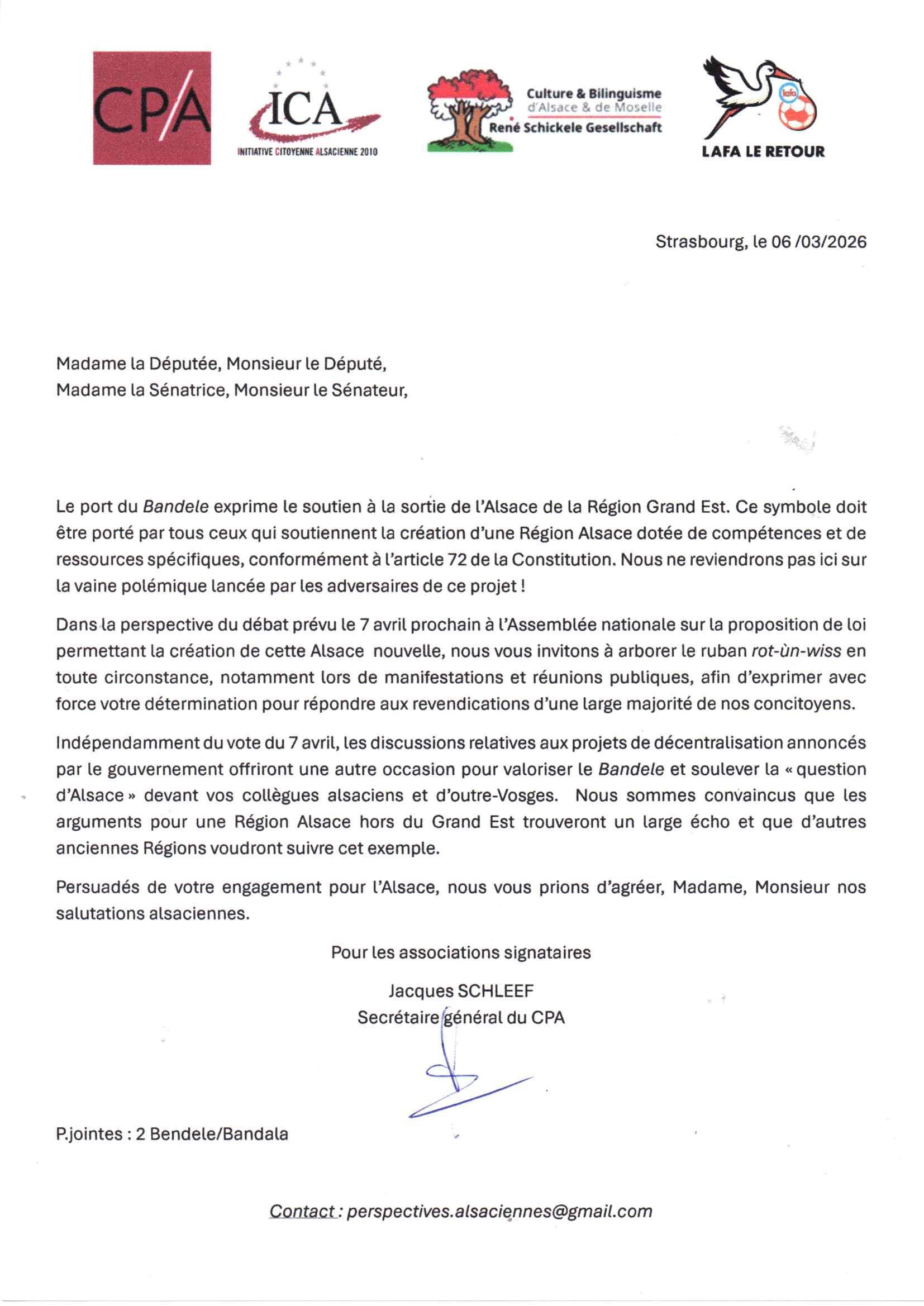 Courrier aux parlementaires alsaciens